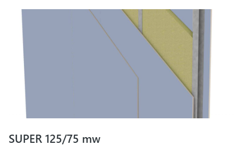 - SUPER 125/75 mw válaszfal: EI 120 minősítés, azaz legalább 120 percig megőrzi integritását és hőszigetelő képességét tűz esetén.